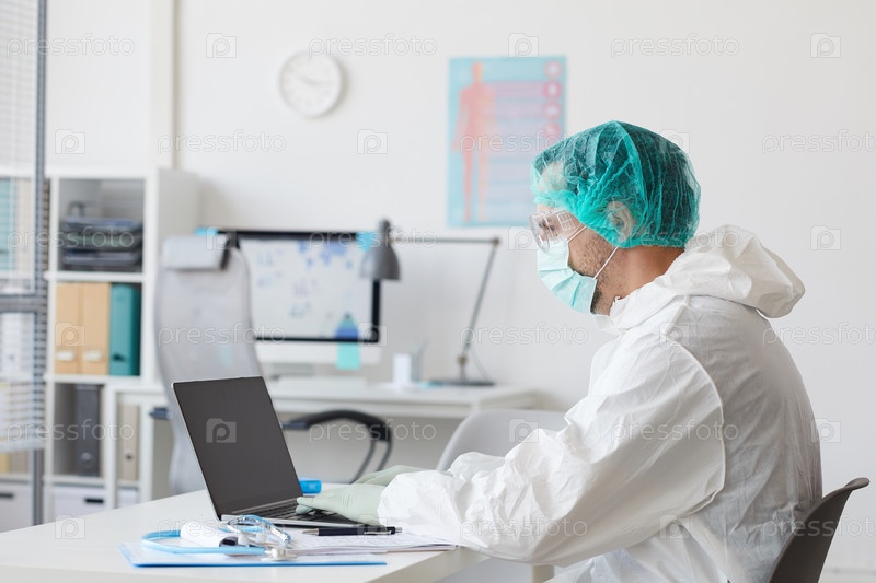 Доктор использует ноутбук на работе