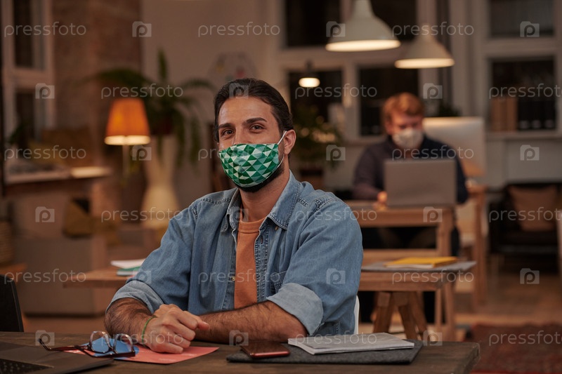 Офисный работник в маске в офисе