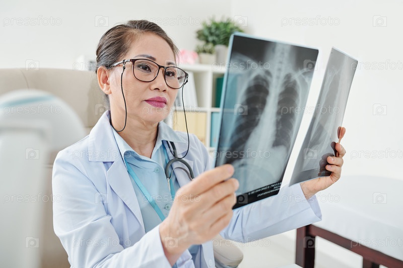 Врач осматривает рентген грудной клетки