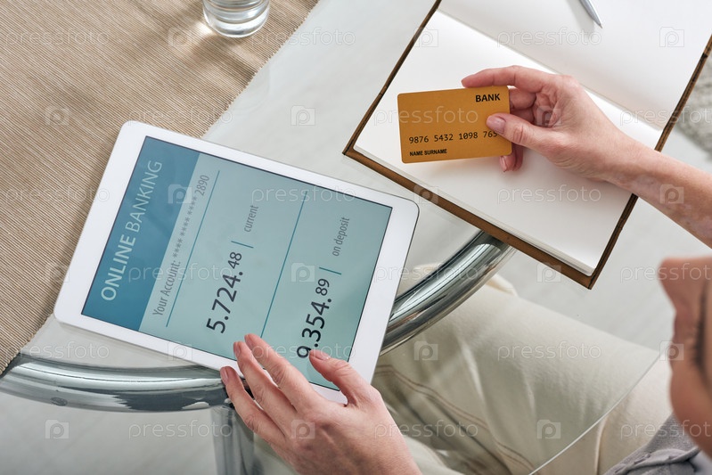 Руки молодой мобильной женщины, просматривающей свой онлайн-банковский счет