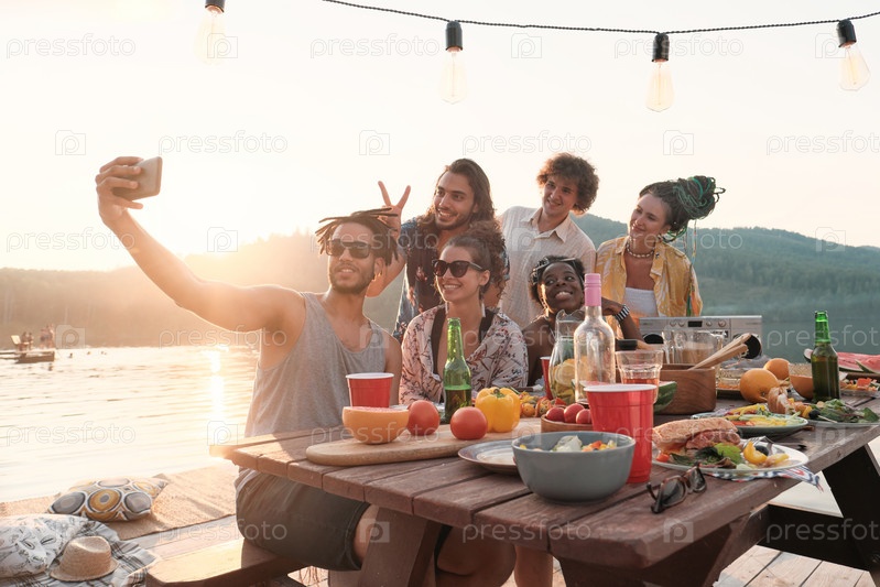 Друзья делают селфи на свежем воздухе