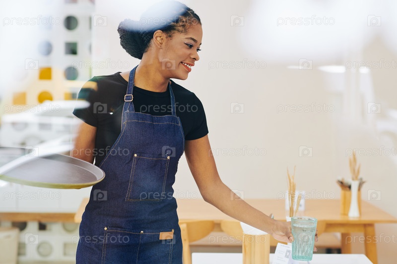 Официантка собирает пустые бокалы