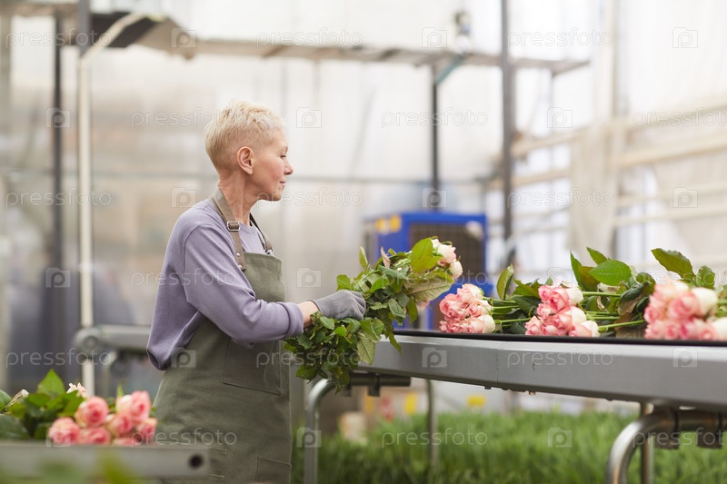 Женщина, упаковывающая розы на продажу