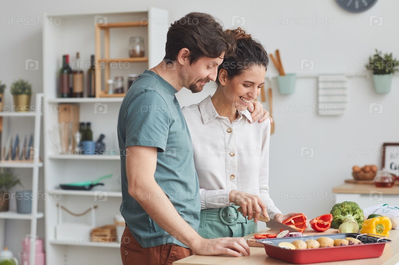 Пара готовит блюдо из овощей