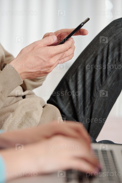 Пишущий смс мужчина сидит на сосе
