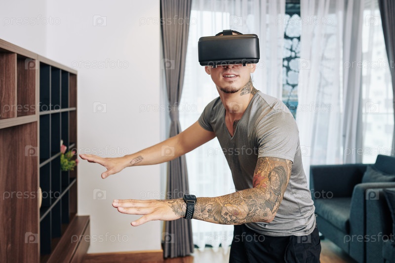 Взволнованный мужчина в очках VR