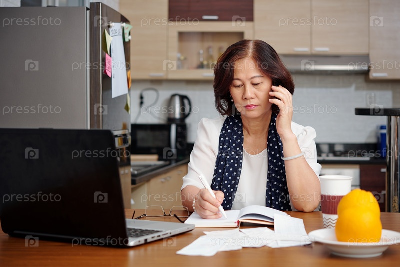 Пожилая женщина, работающая из дома