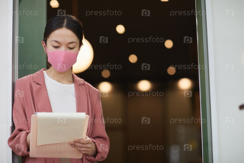 Деловая женщина, работающая во время эпидемии