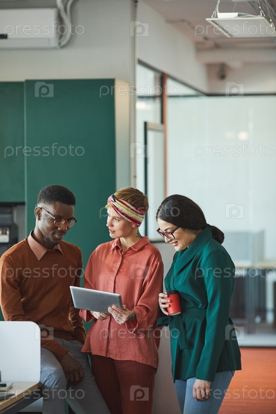 Современная этническая команда в современном офисе