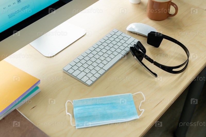 Рабочее место представителя службы поддержки клиентов с компьютерным монитором и другими