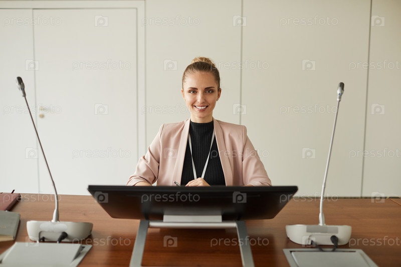 Деловая женщина, выступающая на конференции
