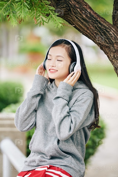 Девушка наслаждается слушанием музыки