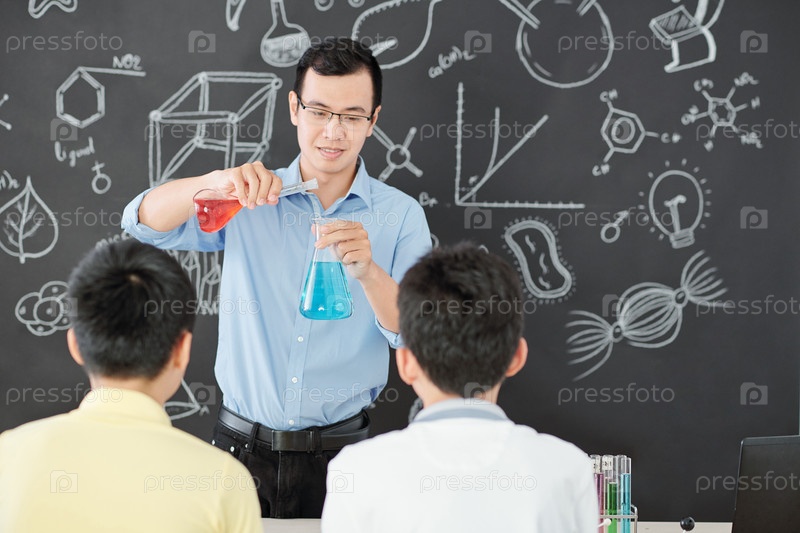 Учитель показывает химическую реакцию