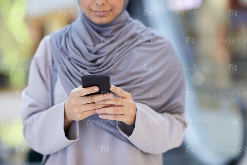 Ближневосточная женщина, использующая смартфон Close Up