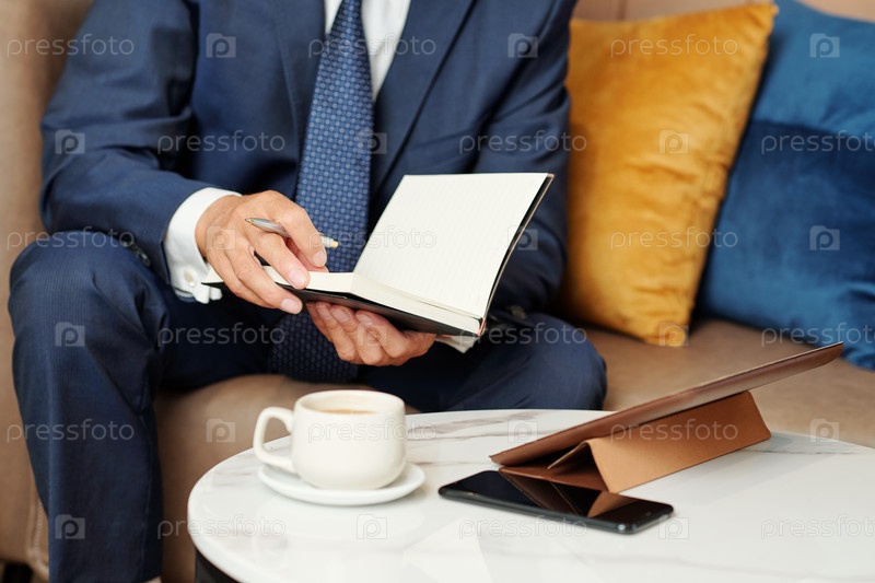 Бизнесмен проверяющий планировщик
