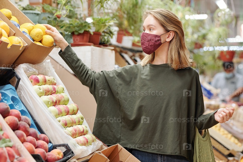 Женщина, покупающая продукты питания во время коронавируса