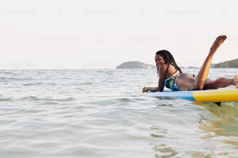 Молодая женщина занимается серфингом