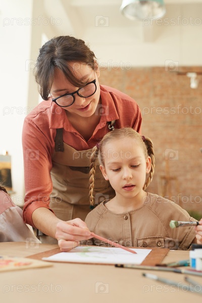 Учитель помогает ученикам рисовать