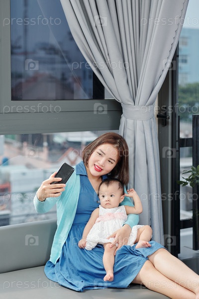 Молодая мать делает селфи
