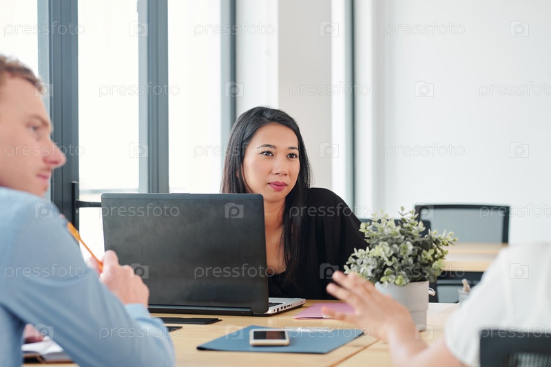 Разработчик программного обеспечения слушает менеджеров по продукту