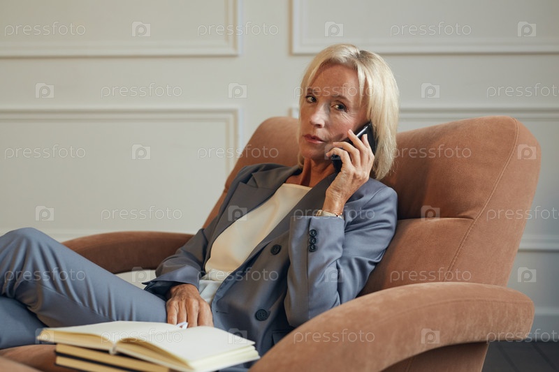 Успешная бизнесвумен разговаривает по телефону