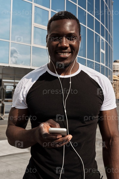 Спортивный мужчина, улыбающийся чернокожий