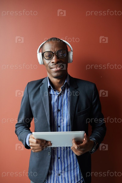 Африканский мужчина с планшетным компьютером