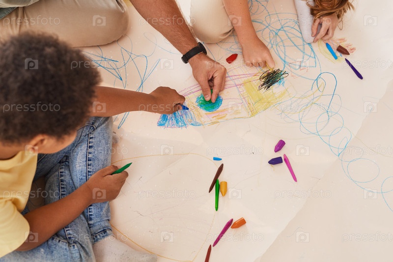 Дети рисуют на полу в уроке искусства