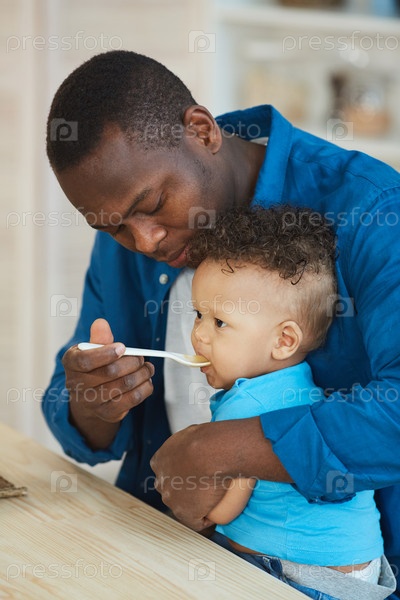 Заботливый мужчина, кормящий сына