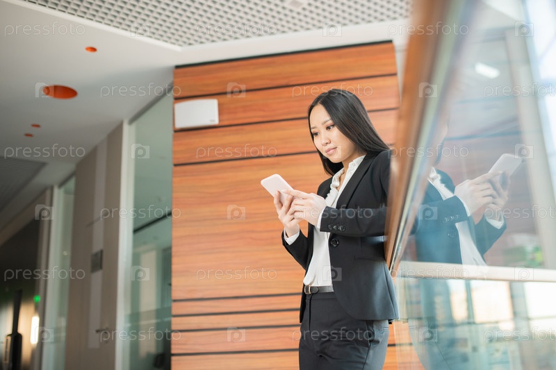 Азиатский менеджер проверяет телефон