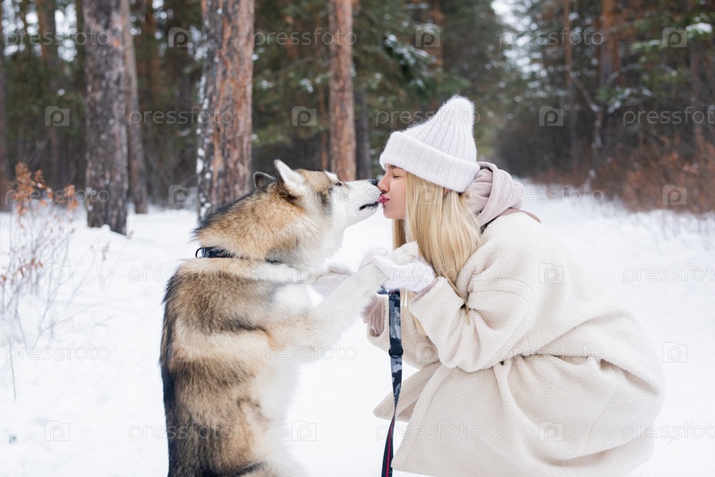 Ласковый и милый чистокровный сибирский хаски-собака лижет рот своему хозяину