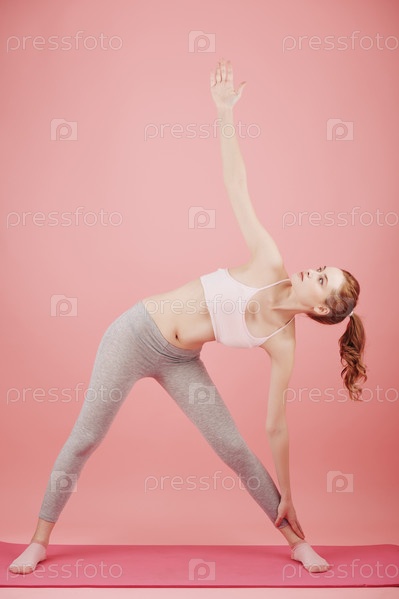 Женщина делает позу треугольника