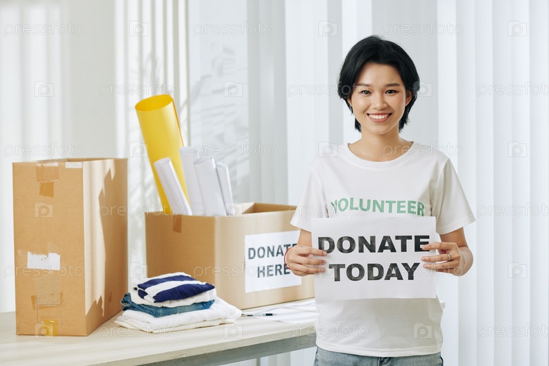 Стать волонтером с плакатом 'пожертвуй сегодня'