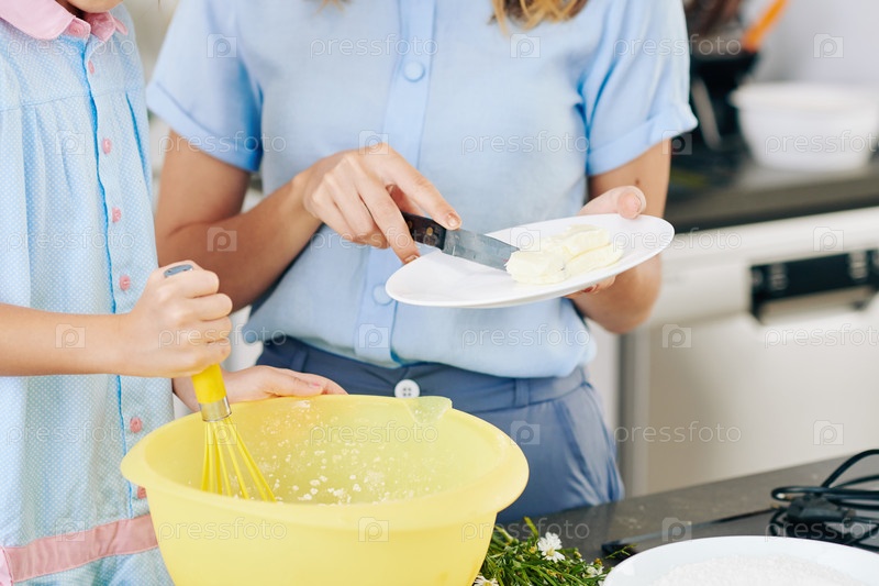 Мама и дочь делают тесто