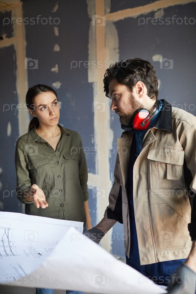 Женщина, разговаривающая с подрядчиком