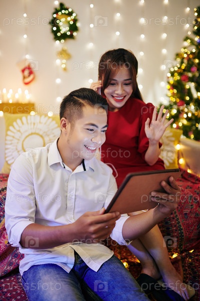 Пара видеозвонит родственникам и друзьям
