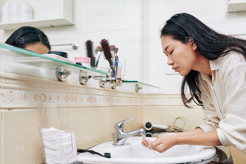 Молодая женщина моет лицо