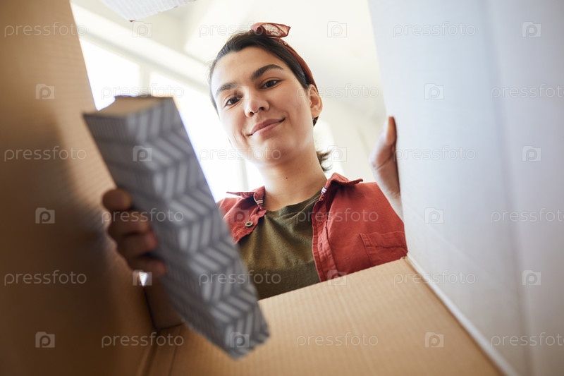 Женщина распаковывает вещи