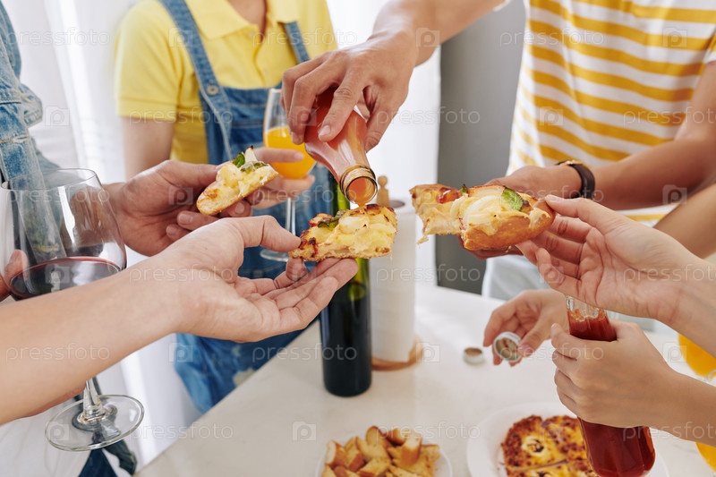 Положить острый соус на пиццу