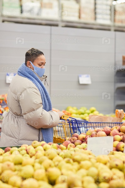 Женщина покупает фрукты