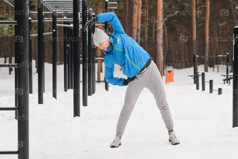 Мужчина делает разминку на тренажерной площадке