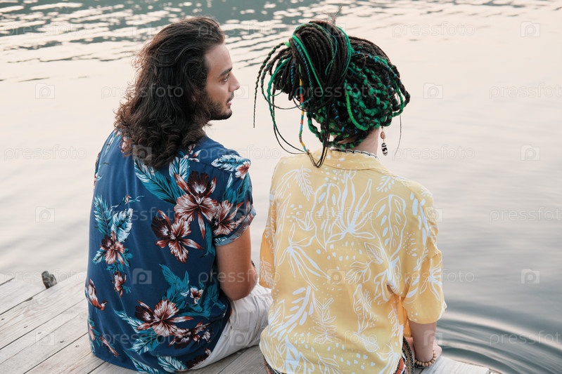 Пара, сидящая на пирсе