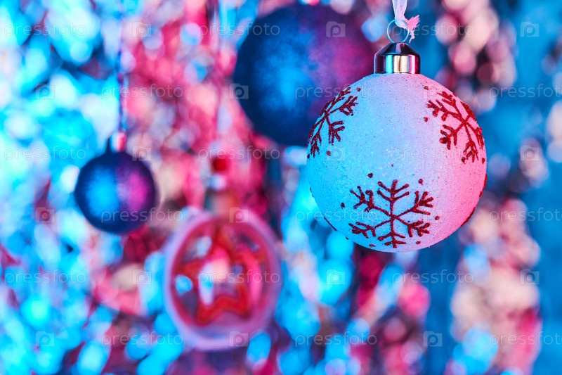 Прекрасный рождественский игрушечный шар с красными снежинками и другими сферическими украшениями