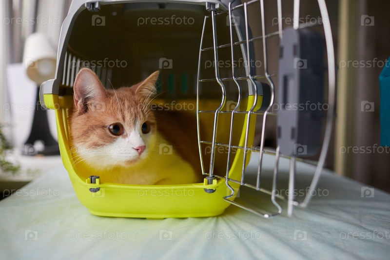 Кошка сидит в клетке