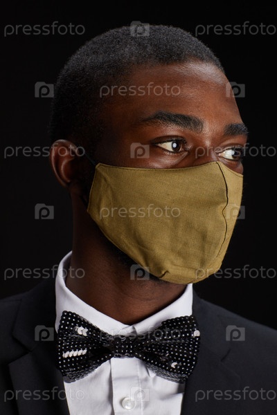 Элегантный афроамериканский мужчина, носящий маску на вечеринке Close Up