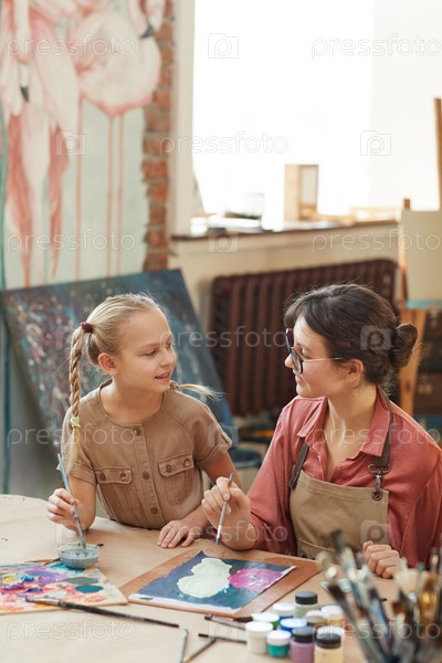 Женщина и девочка рисуют