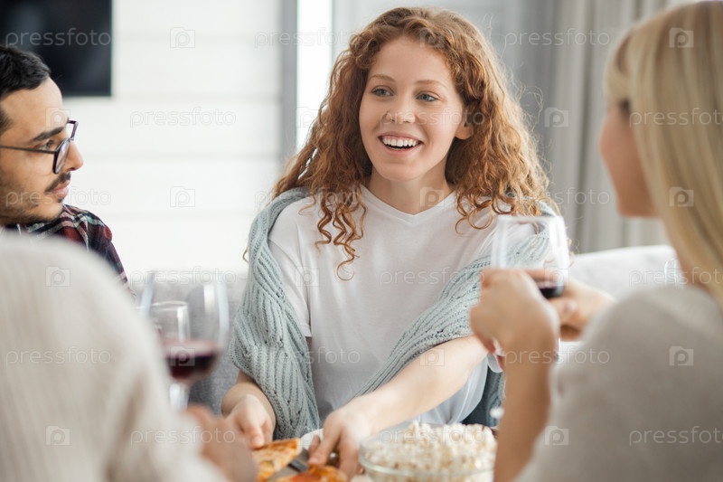 Красивая девушка делится новостями с друзьями