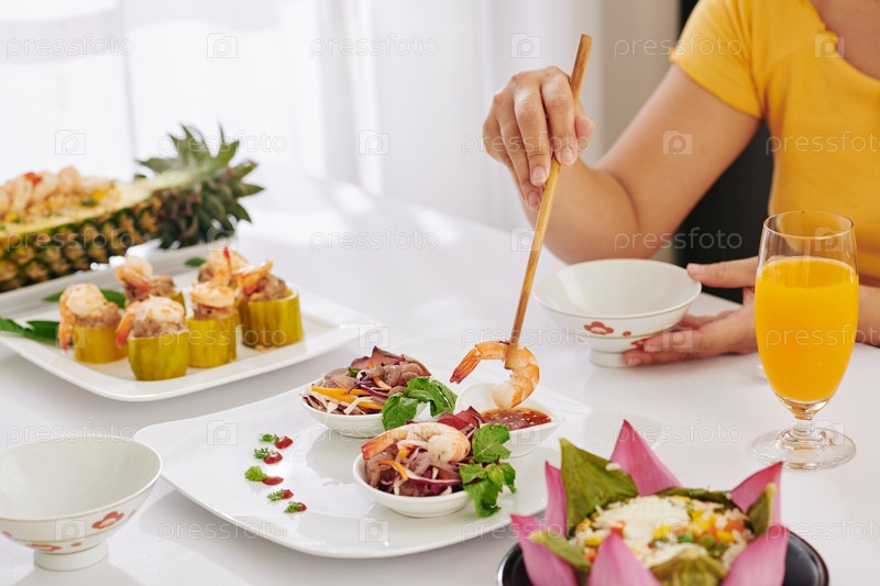 Женщина наслаждается праздничным ужином