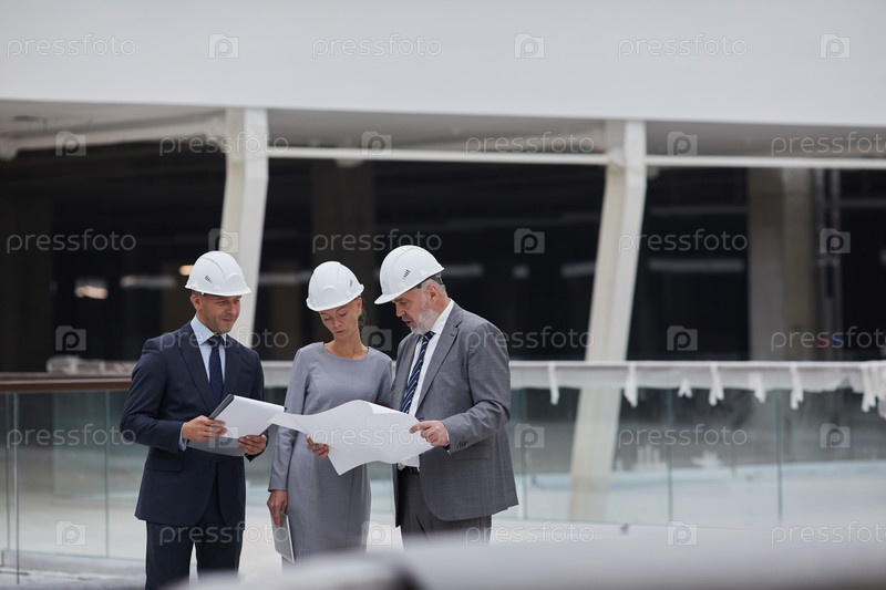 Группа деловых людей, посещающих строительный участок