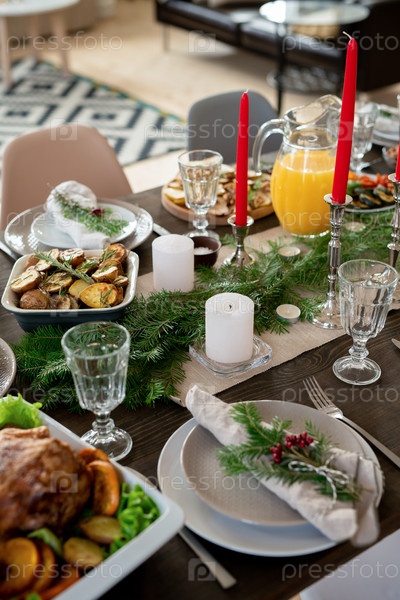 Праздничный стол подают домашним апельсиновым соком, жареным картофелем с индейкой